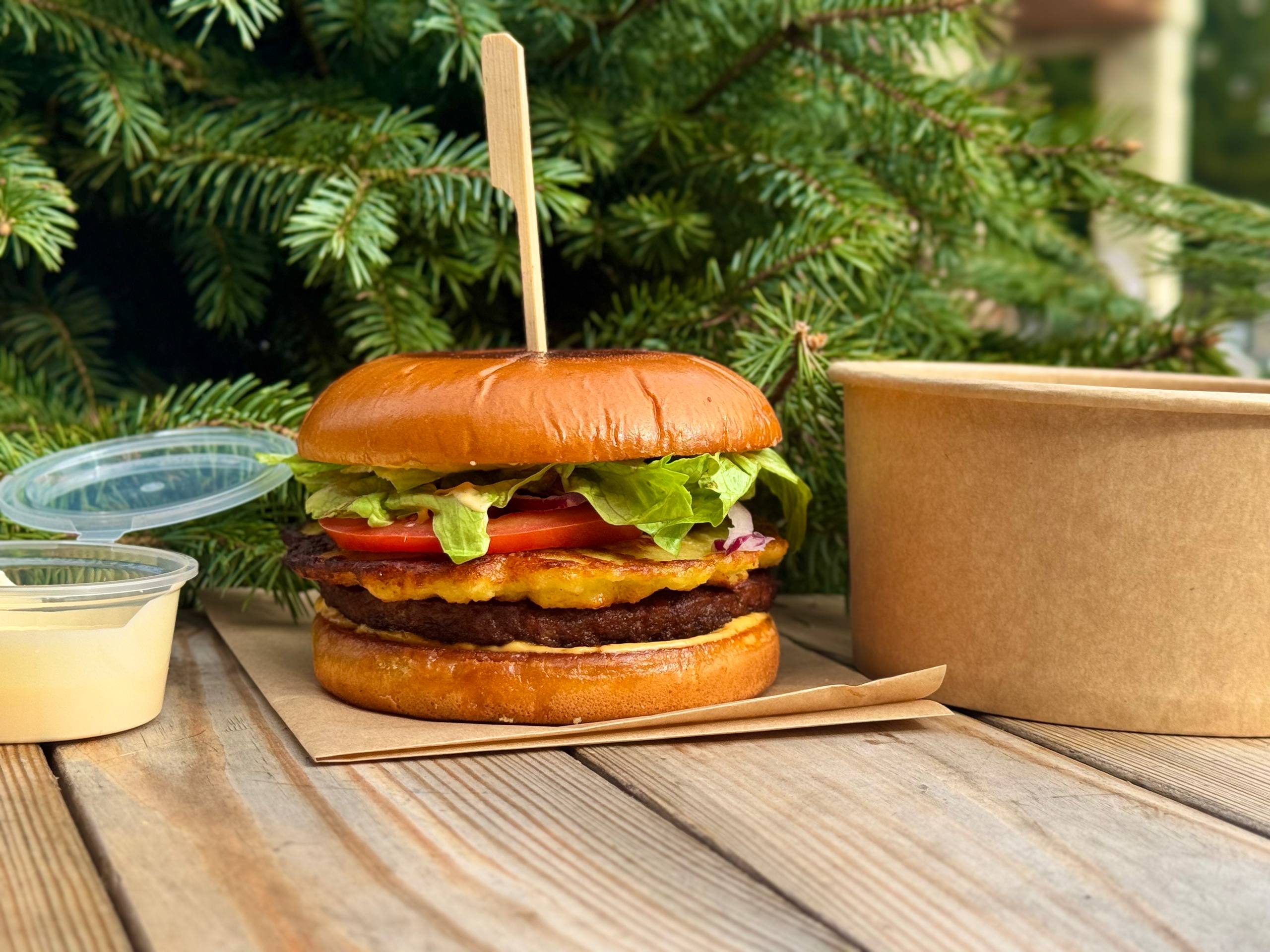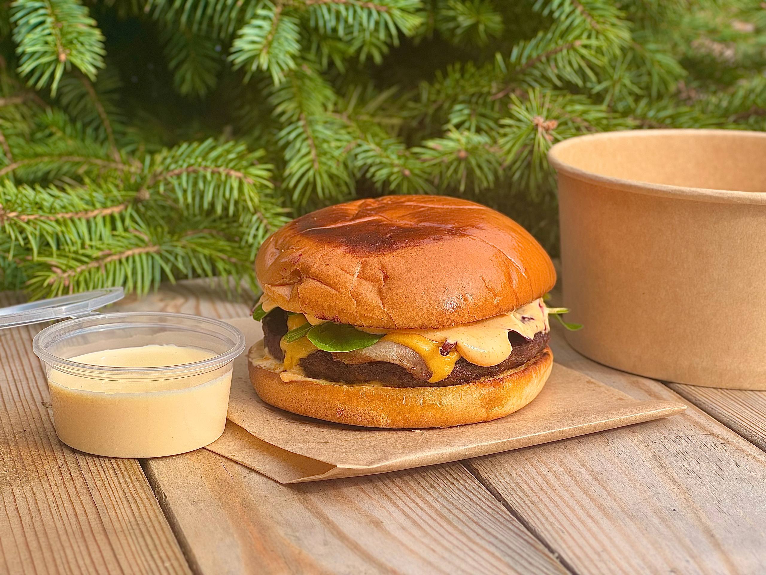 Бургер Довбуша з котлеткою з яловичини та деруном
