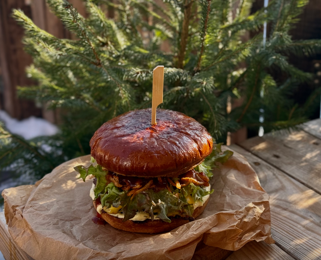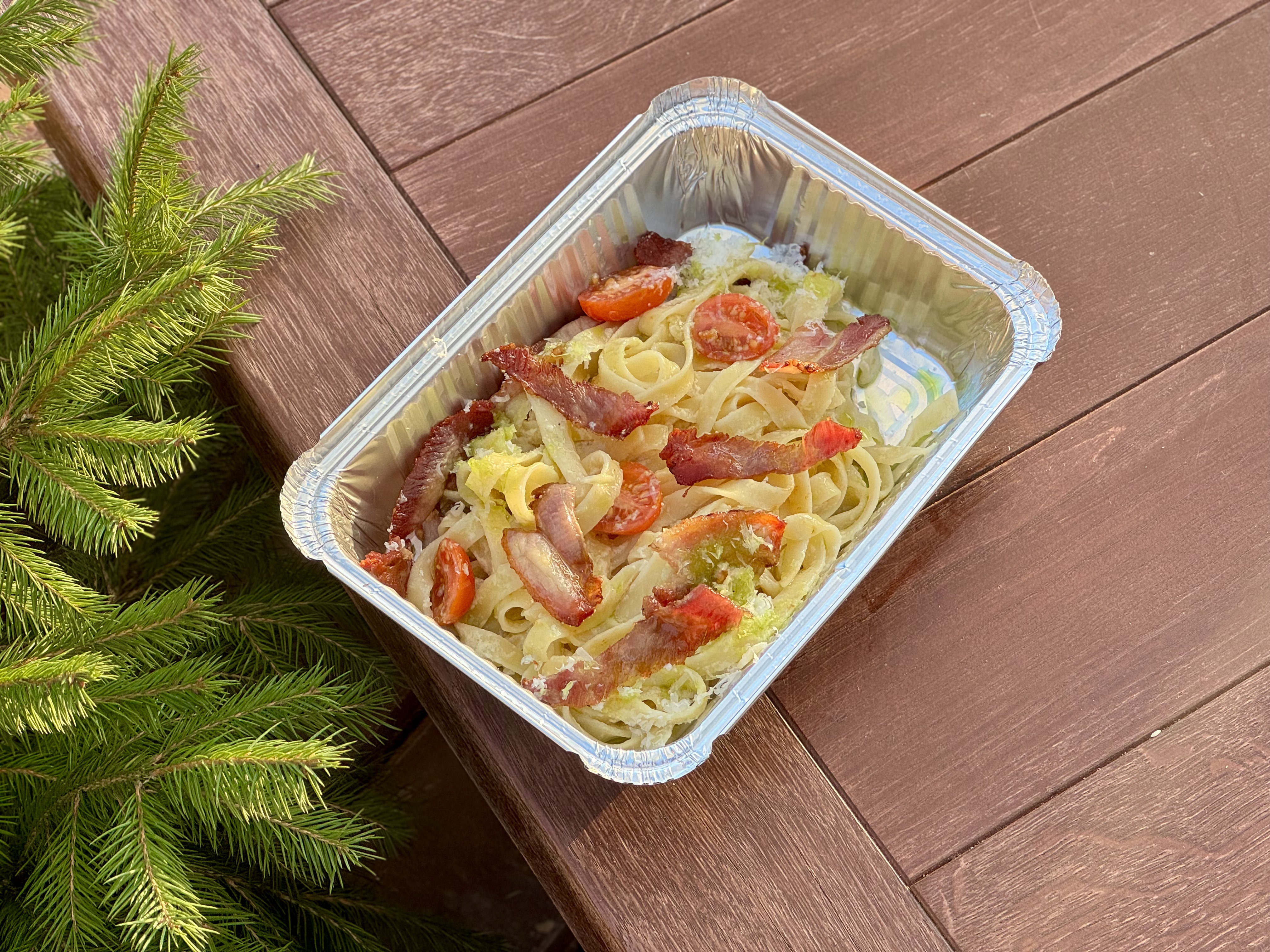 Салат з курячою печінкою, беконом та соусом із двох гірчиць
