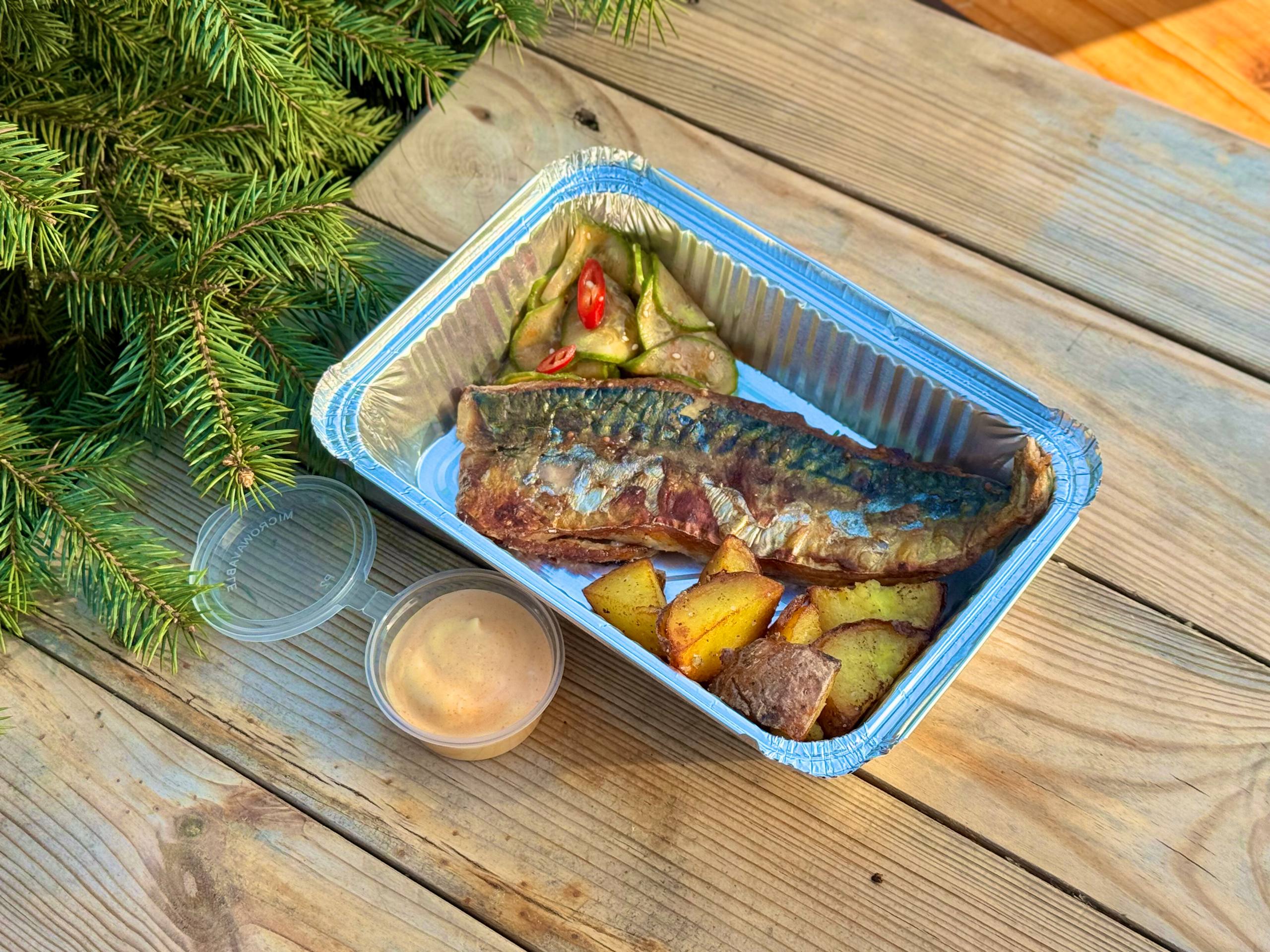 Скумбрія з картоплею та битими огірками
